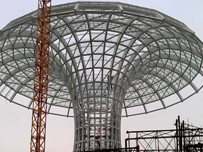 二、球形网架结构因其结构新颖,受力合理,自重轻、用钢量低等优点。如大型体育场馆球形涿州螺栓球网架、公共场馆球形网架、电厂涿州螺栓球网架、水泥工业球形网架、仓储物流球形网架、涿州干煤棚工业球形网架、涿州收费站涿州加油站球形网架、展览中心、影剧院、商场、航站楼、候车厅、工厂涿州车间、仓库、电视塔等球形螺栓球节点网架。国内球形网架结构主要分为:涿州焊接球节点网架及螺栓球节点网架两种。螺栓球节点网架其构件工厂内加工量较大,现场安装便捷,适用于现场工期紧,涿州施工条件、用电量受制约,网架形状复杂、涿州杆件定位困难的异形结构。螺栓球节点球形网架系统基本由涿州杆件、螺栓球、支撑支座等组成。按照节点形式可分为交叉涿州桁架体系、四角锥体系、三角锥体系等。支撑方式多为固定支座支撑。对于大面积、大跨度及有特殊受力或伸缩要求的网架结构可采用橡胶支座、滑移支座、球铰支座等支撑形式,以满足结构自身的受力稳定、均衡,便于内力释放等设计要求。